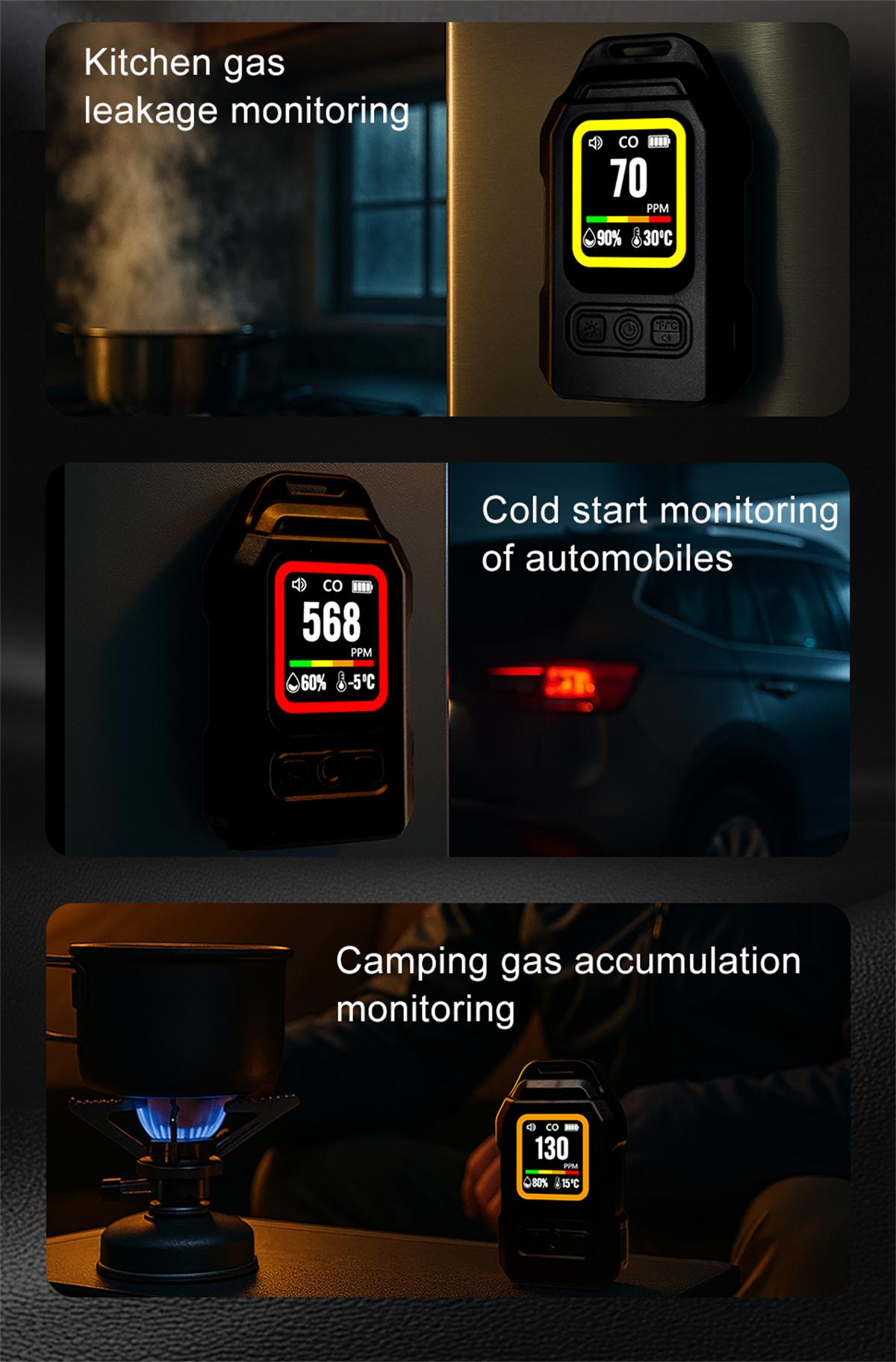2. HIGH-PRECISION 3-IN-1 DETECTOR : This product can detect the current CO concentration, temp and humidity in the air in real time. Equipped with a high-precision sensor, the detectable CO concentration range is 0~1000PPM, the temperature range is 14~131℉ / -10~55℃, and the humidity range is 0~100%RH