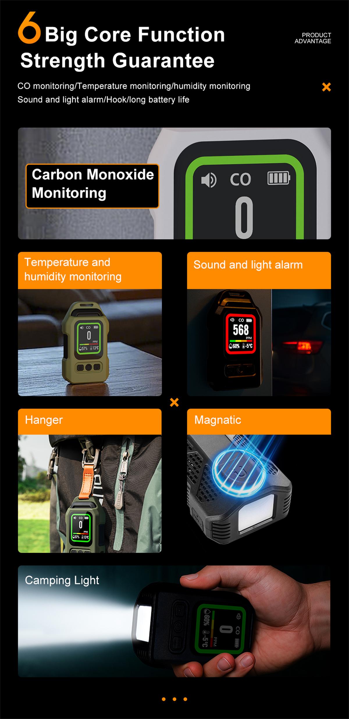 4.PORTABLE TORCH:This CO detector includes a 2-mode LED flashlight that offers high light-100 Lumens, low light-25 Lumens